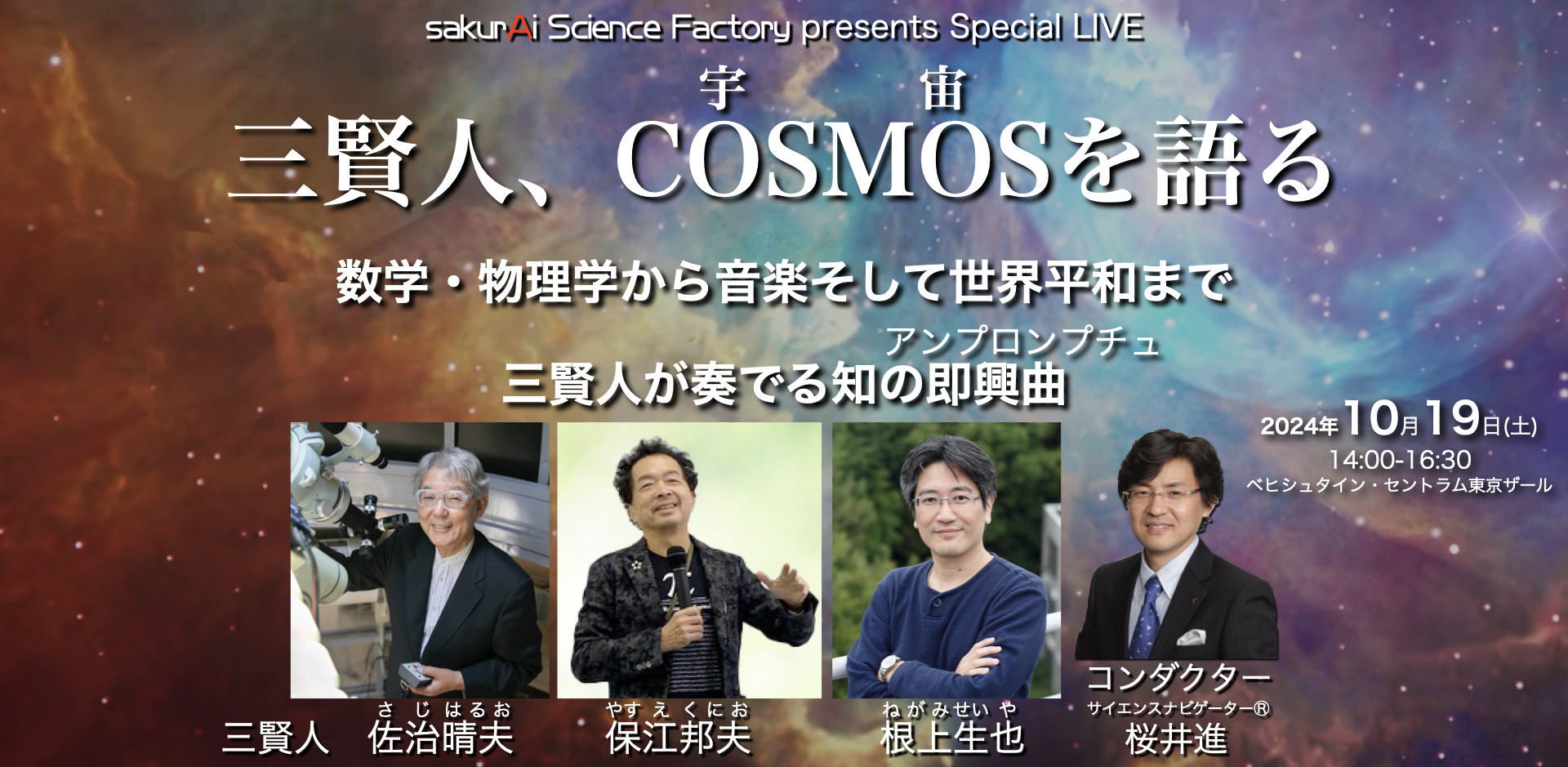 世界の佐治、世界の保江、世界の根上が発する珠玉の言葉がクロスオーバーするスペシャルライブ